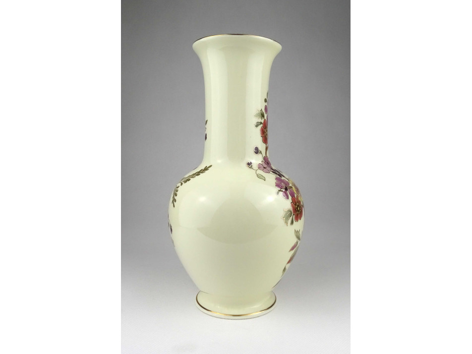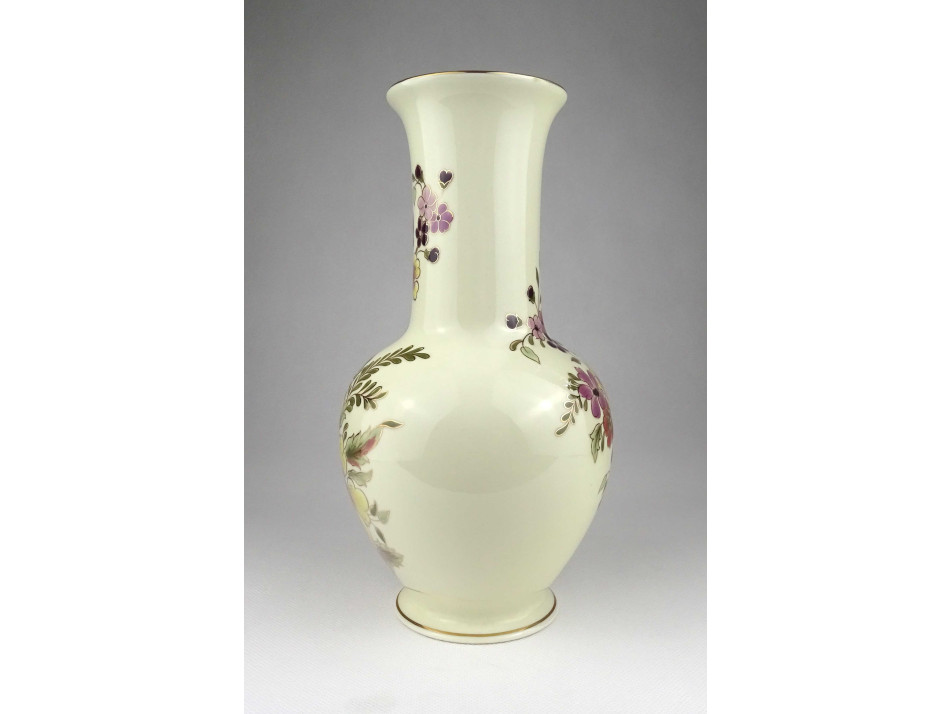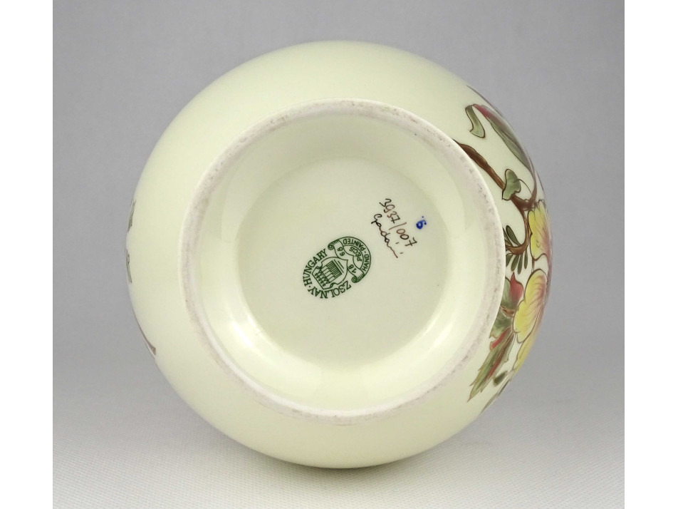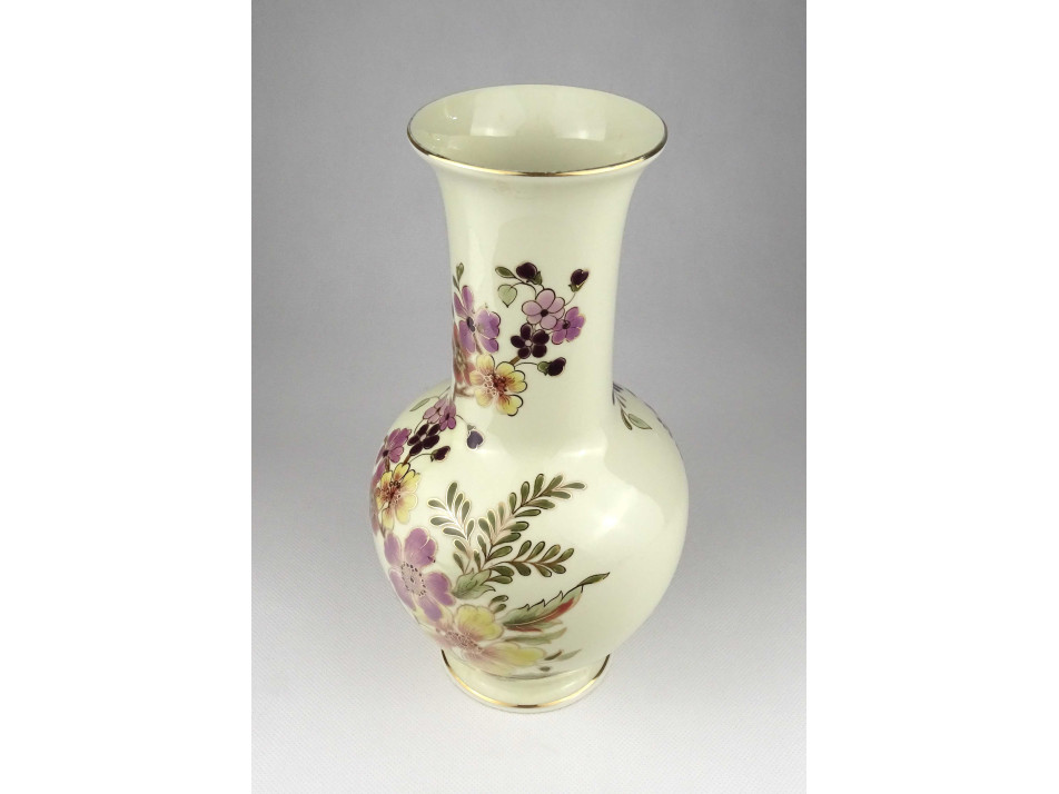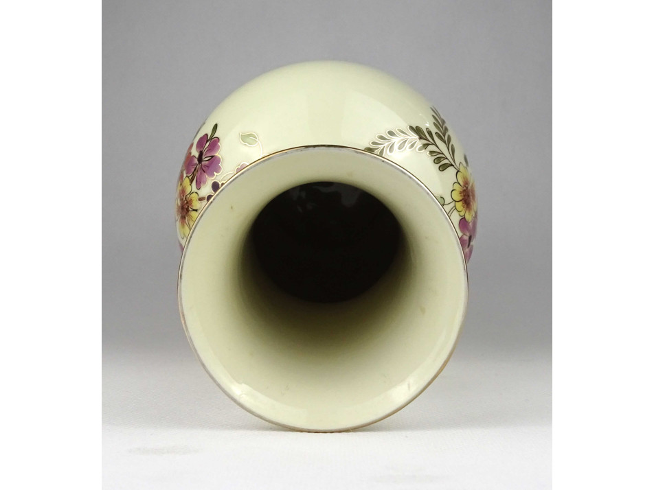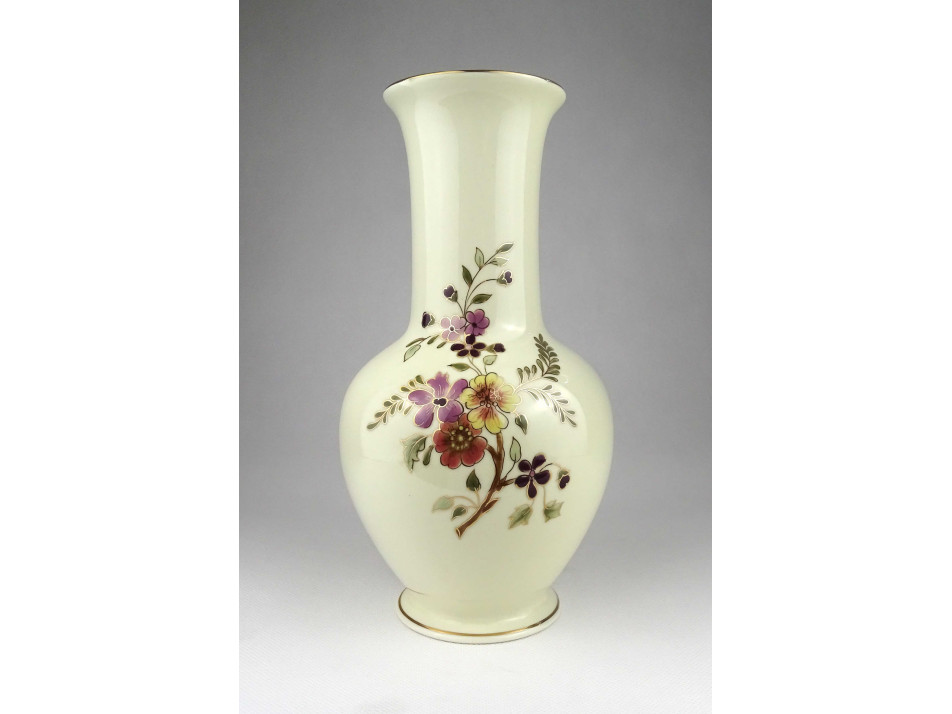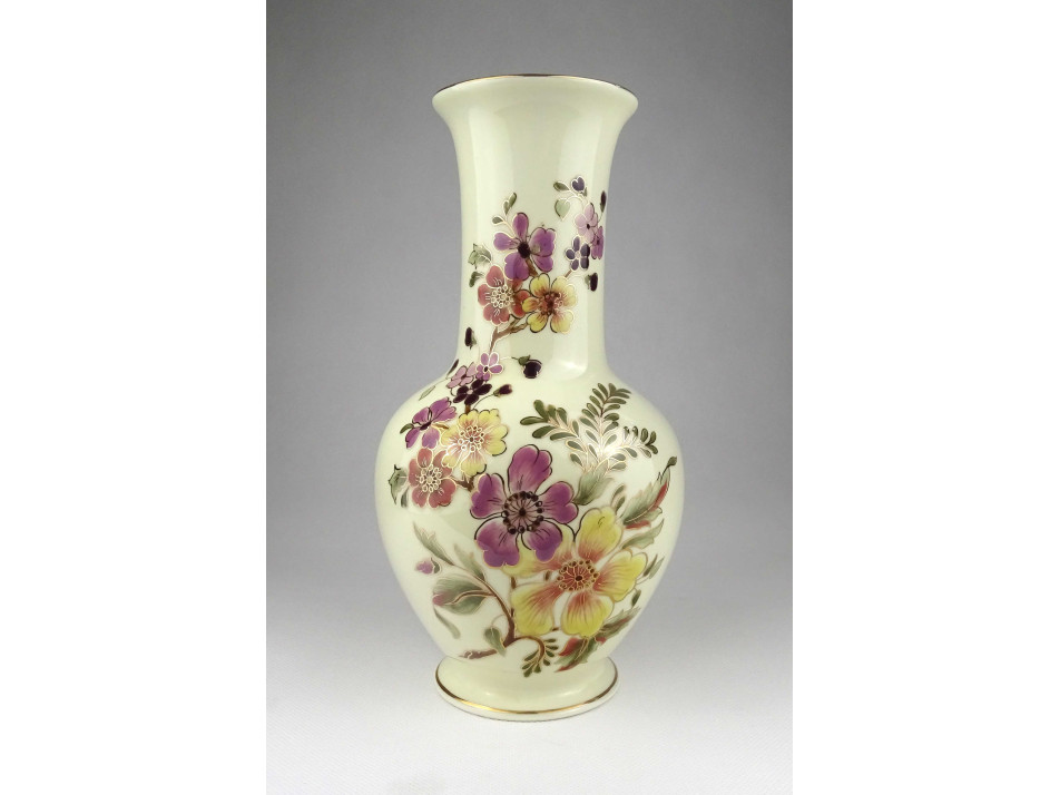Hibátlan állapotú, vajszínű, virágmintás, gazdagon aranyozott Zsolnay porcelán dísz váza.