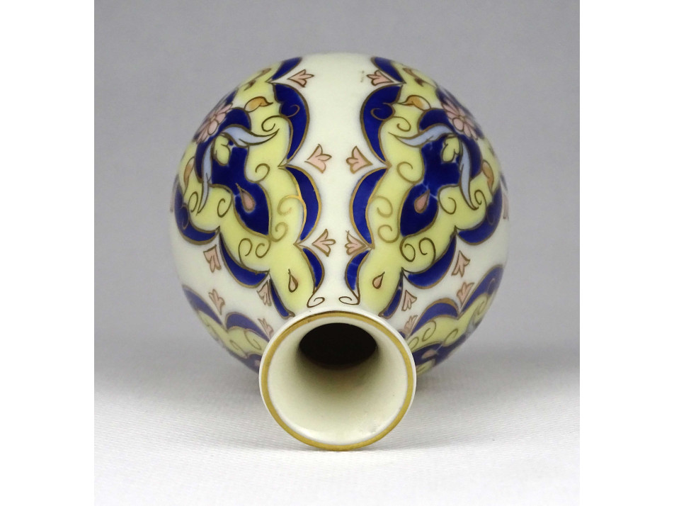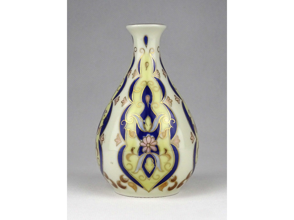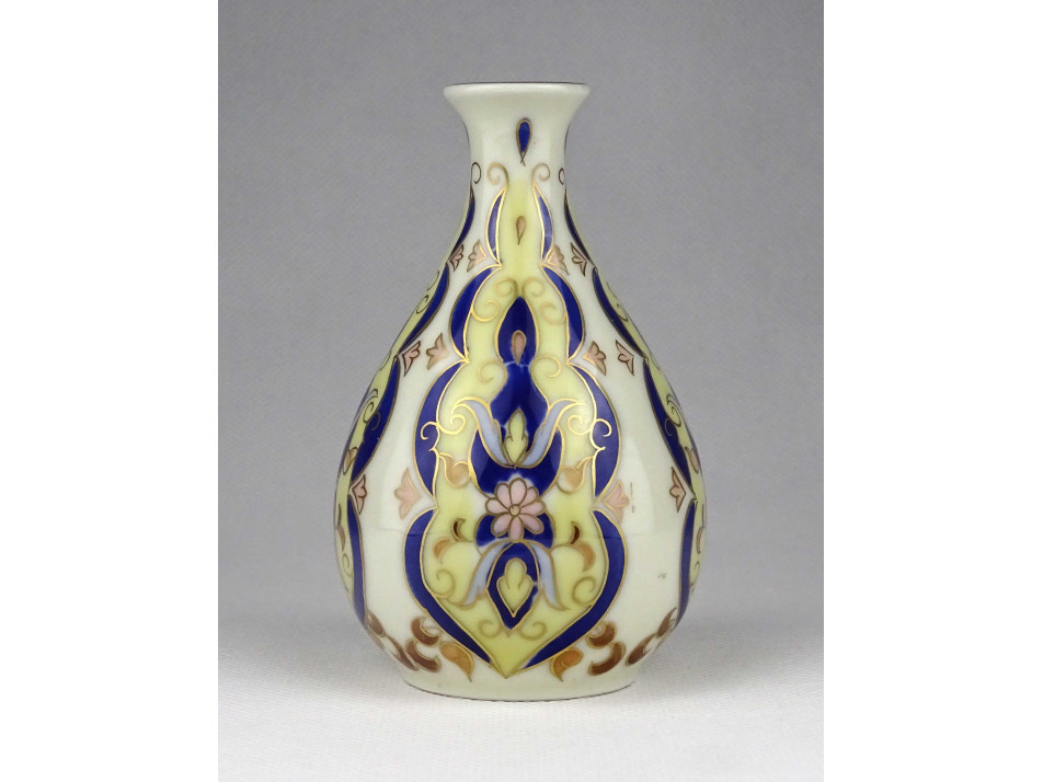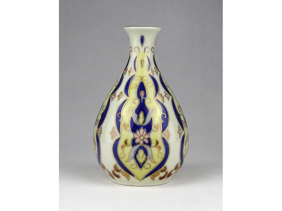 Vajszínű perzsa mintás Zsolnay porcelán díszváza ibolyaváza 11.3 cm