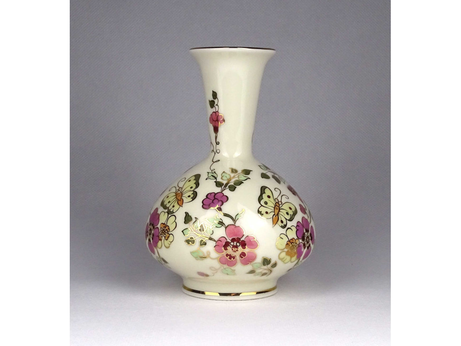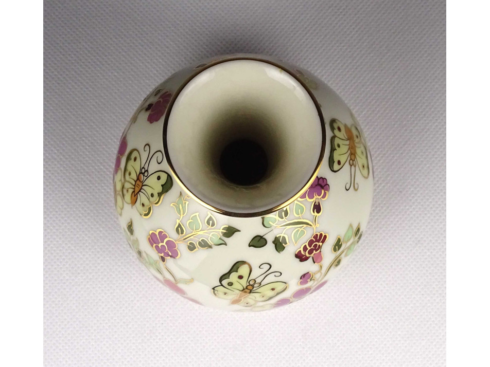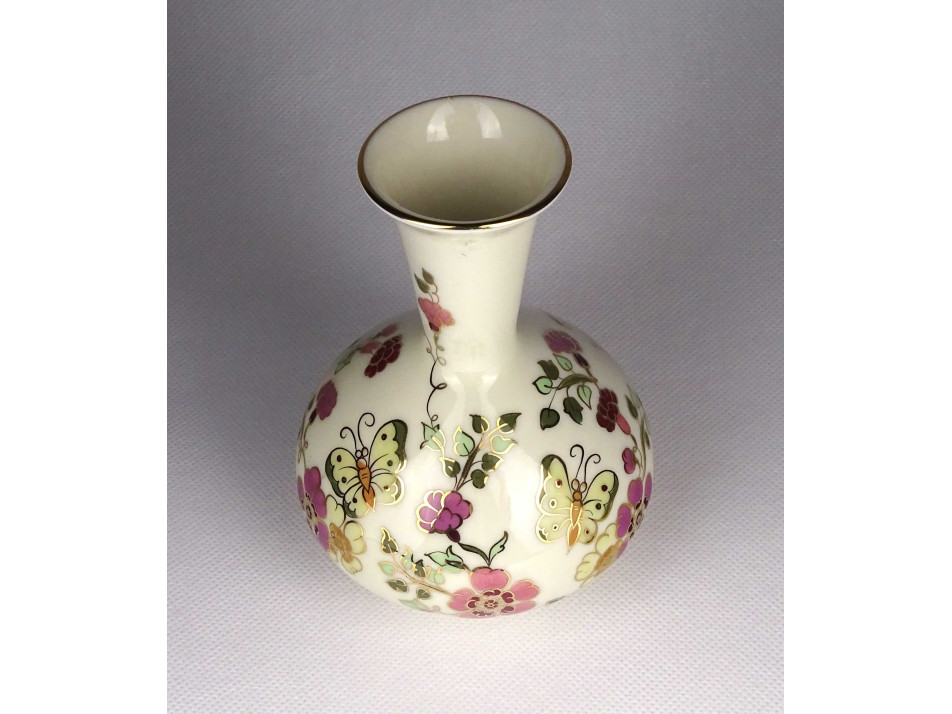Régi pillangós vajszínű Zsolnay porcelán váza 14.6 cm
