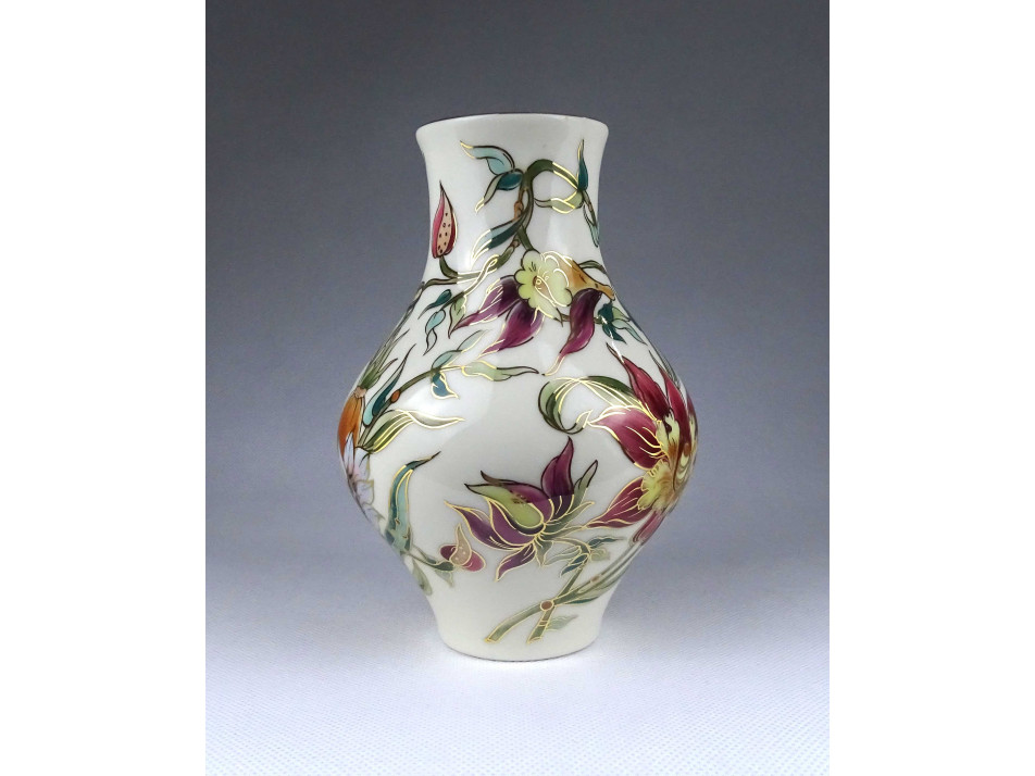 Vajszínű orchidea mintás Zsolnay porcelán váza 17.6 cm