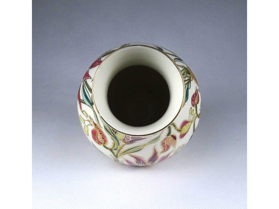 Hibátlan állapotú, jelzett, vajszínű, aranyozással díszített, gyönyörű orchidea mintás Zsolnay porcelán váza.