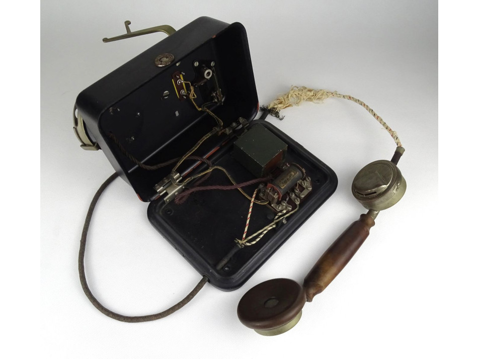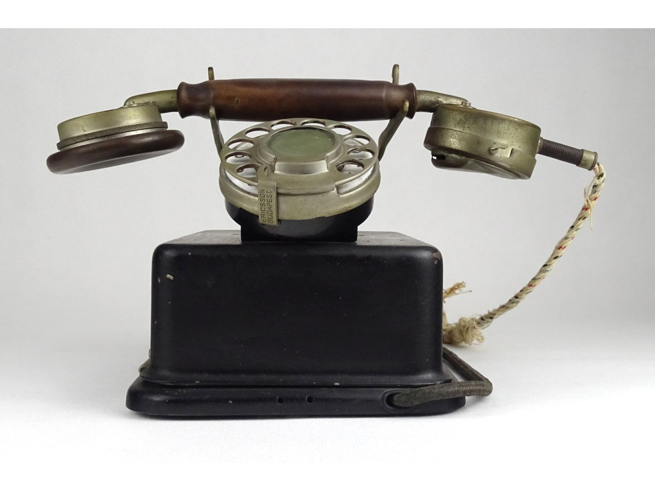 Antik, fém házas telefonkészülék. Külsőleg szép állapotban van. Belsejéből hiányzik a csengő. Fém számtárcsája működik, kézibeszélője is megvan.