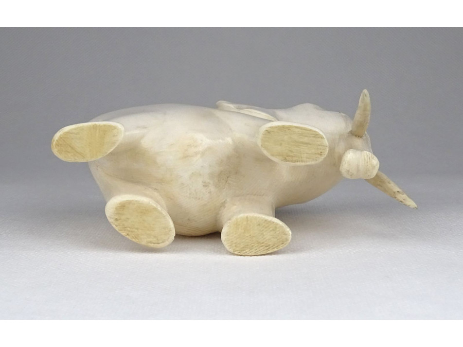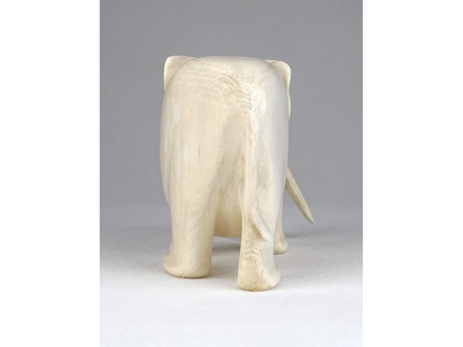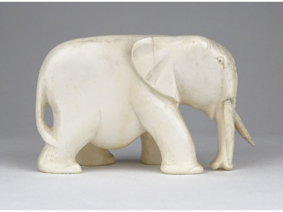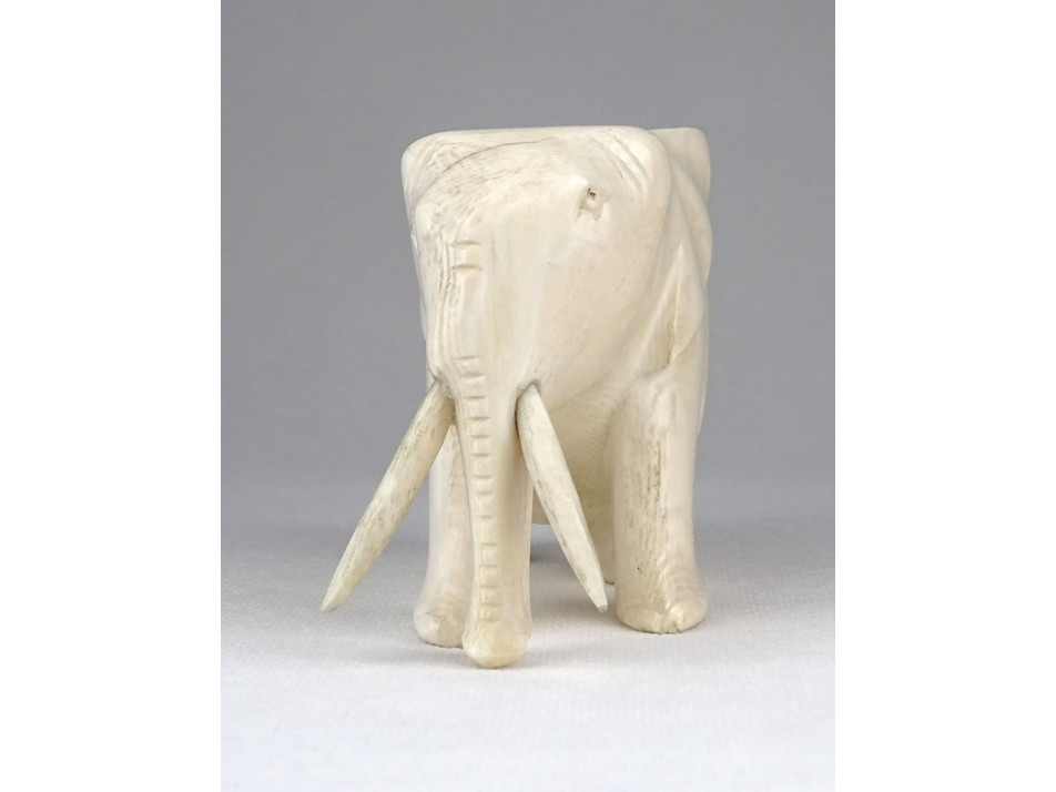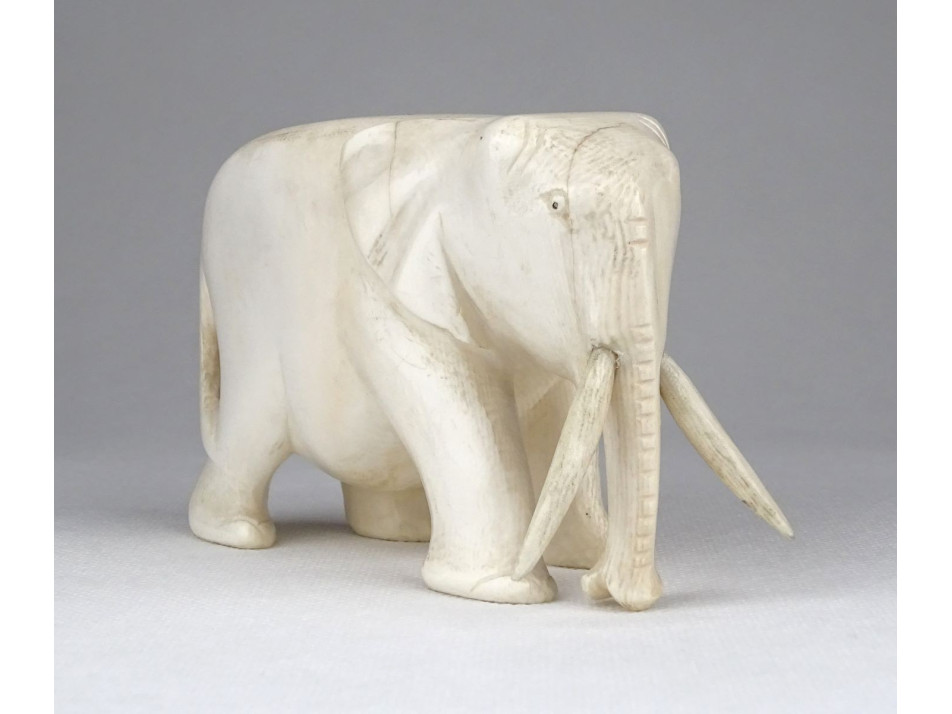 Régi, szép állapotú faragott csont elefánt szobor. Az agyarain kívül egy tömbből készített faragás.