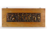 Kubisch János jelzett képcsarnokos szőlőszüret bronz relief 21 x 49 cm