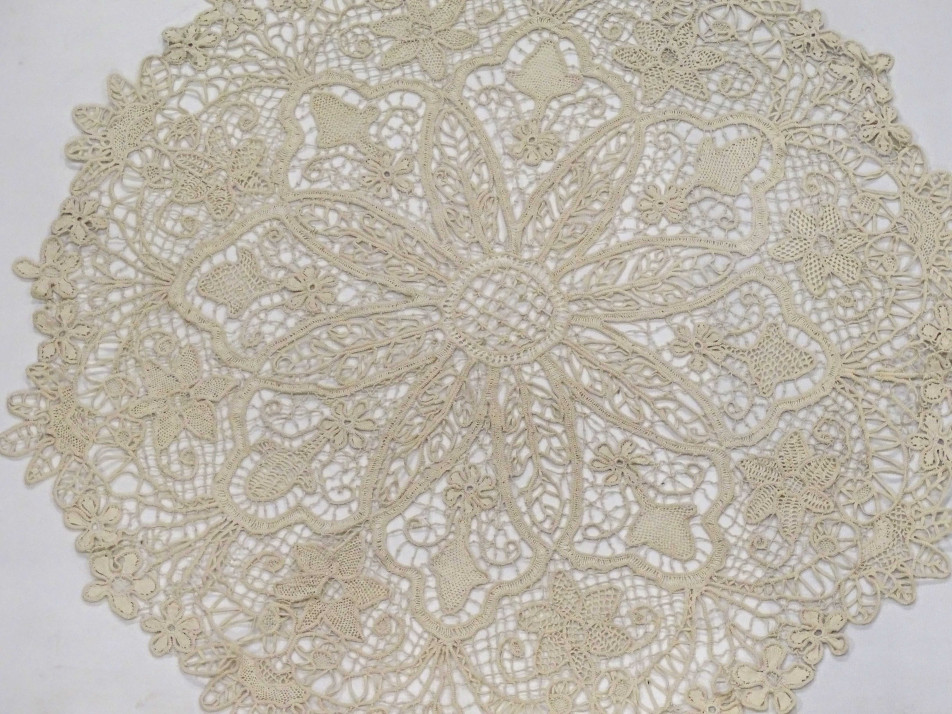 Antik nagyméretű, kör alakú csipke terítő 90 cm