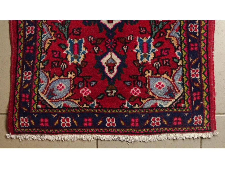 Régi kisméretű kézi szövésű ágyelő ágykilépő szőnyeg 60 x 80 cm
