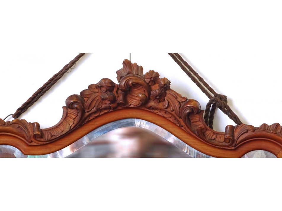 Falra akasztási lehetőséggel rendelkező szép állapotú, faragott díszítéses neobarokk tükör. Benne eredeti, formakövető metszett, fazettázott tükör, vakfolt mentes szép állapotban.