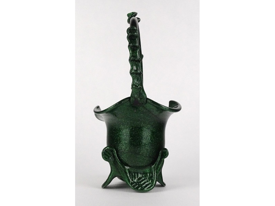 Antik, hibátlan állapotú, élénk zöld színű fújt üveg kosár. Muránói üveg. A kosár a talpán kissé billeg.