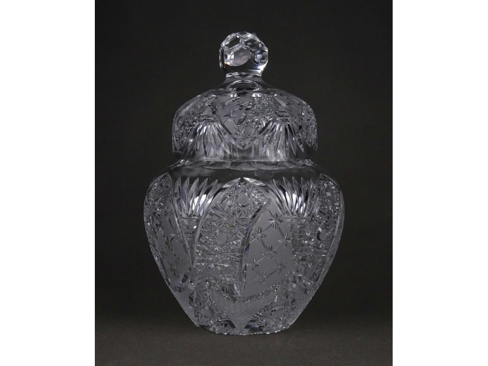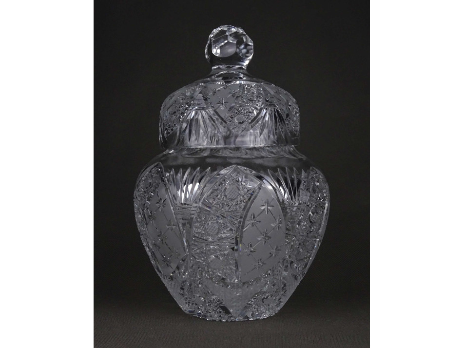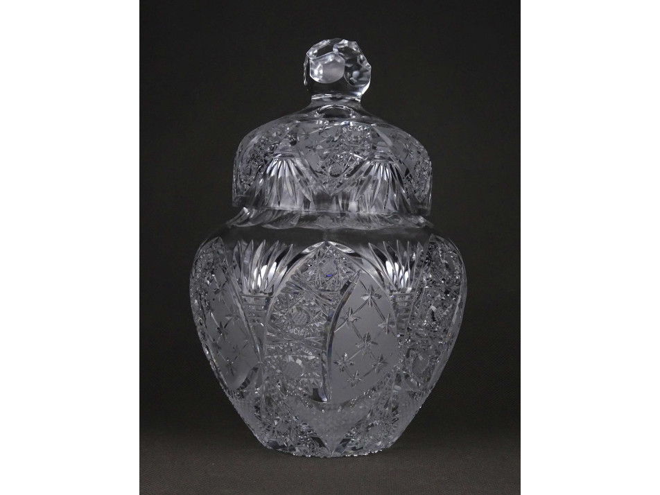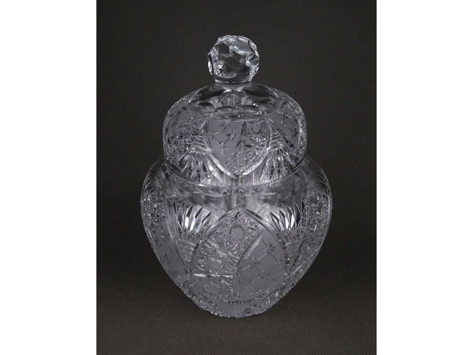 Nagyméretű gazdagon csiszolt kristály bonbonier 20.5 cm