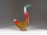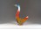 Hibátlan állapotú, madár alakú, színezett, kék-narancssárga színű művészi üveg dísztárgy. Oldalán gyártói címke, lásd fotó.