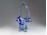 Hibátlan állapotú, színezett, kék-fehér művészi üveg kosár dísztárgy, cseh fújt üveg a XX. század második feléből.