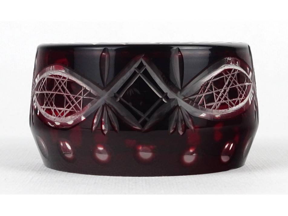 Régi, szép állapotú, régi bordóra színezett csiszolt üveg hamutál. Fejre fordítva is hamutálként funkcionál.