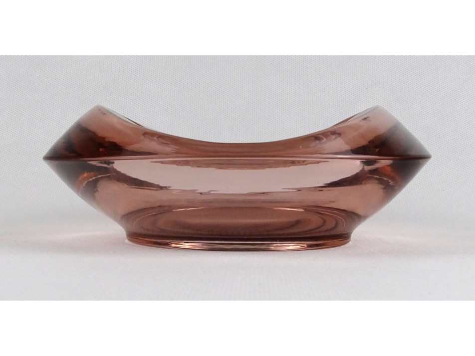 Régi rózsaszínűre színezett vastagfalú art deco üveg hamutál 17 cm