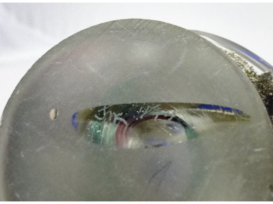 Művészi különleges jelzett fújtüveg levélnehezék modern stílusban.