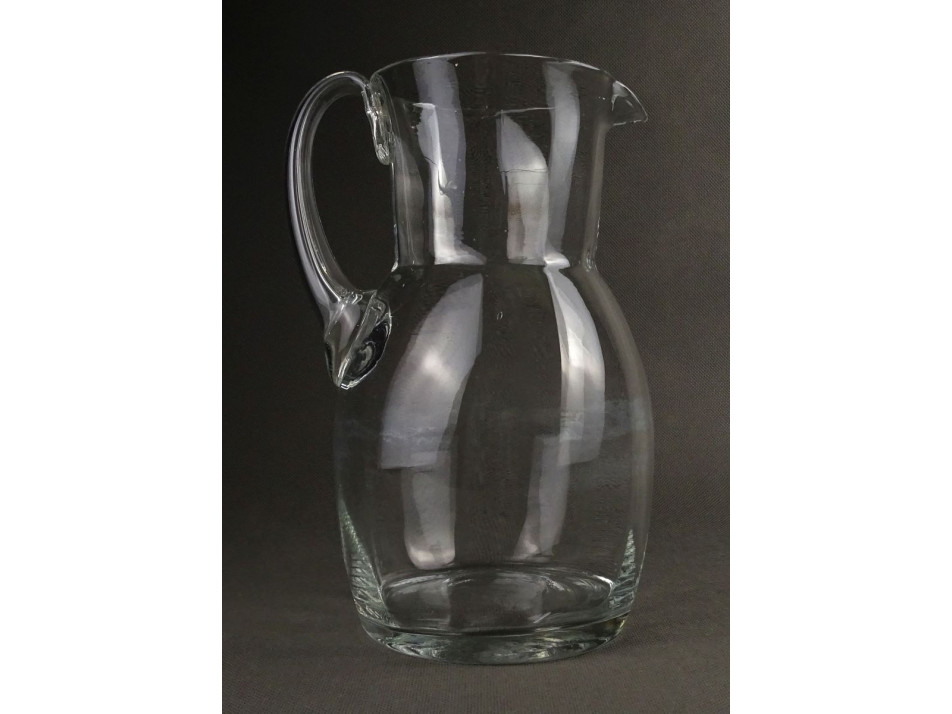 Hibátlan állapotú, fújt üveg kancsó, boroskancsó, vizeskancsó. A kancsó teste enyhén bordázott.