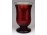Antik, szép állapotú, aranyozott, bíborpácolt, vastag falú Biedermeier talpas üveg pohár. Oldalán elhalványodott aranyozott díszítés látható.