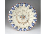 Antik nagyméretű puttós majolika asztalközép kínáló gyümölcskínáló tál 30.5 cm