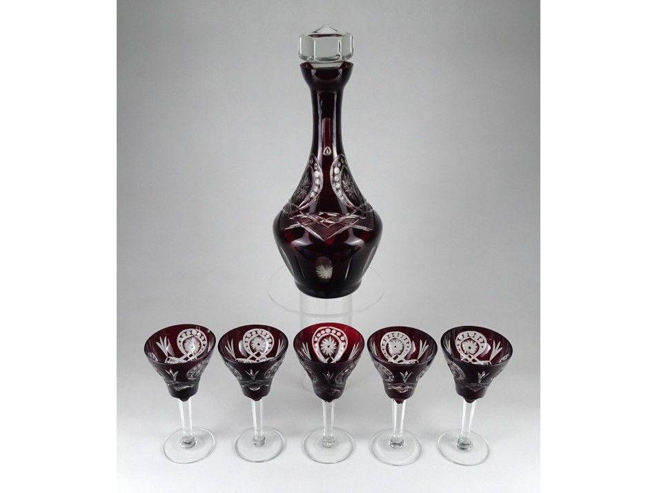 Régi piros növényi mintás gépi szövésű szőnyeg 100 x 156 cm