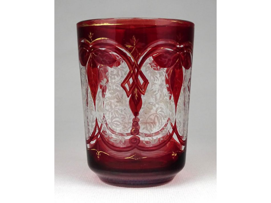 Antik festett aranyozott Biedermeier bíborpácolt pohár 10.5 cm