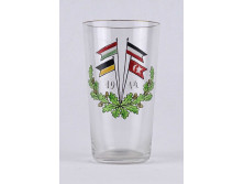 Hibátlan állapotú, talpas, kékre színezett csiszolt kristály kehely. Oldala szőlőfürttel , szőlőlevéllel díszített.