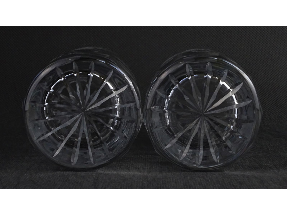 Gyönyörű, hibátlan állapotú csiszolatokkal díszített pohár pár. Kristály pohár párban. A poharak oldalán csiszolt alföldi jelenet, bográcsban főző juhász vagy csikós látható.
