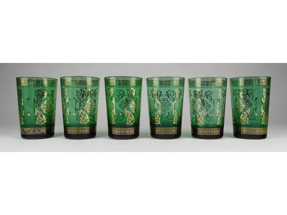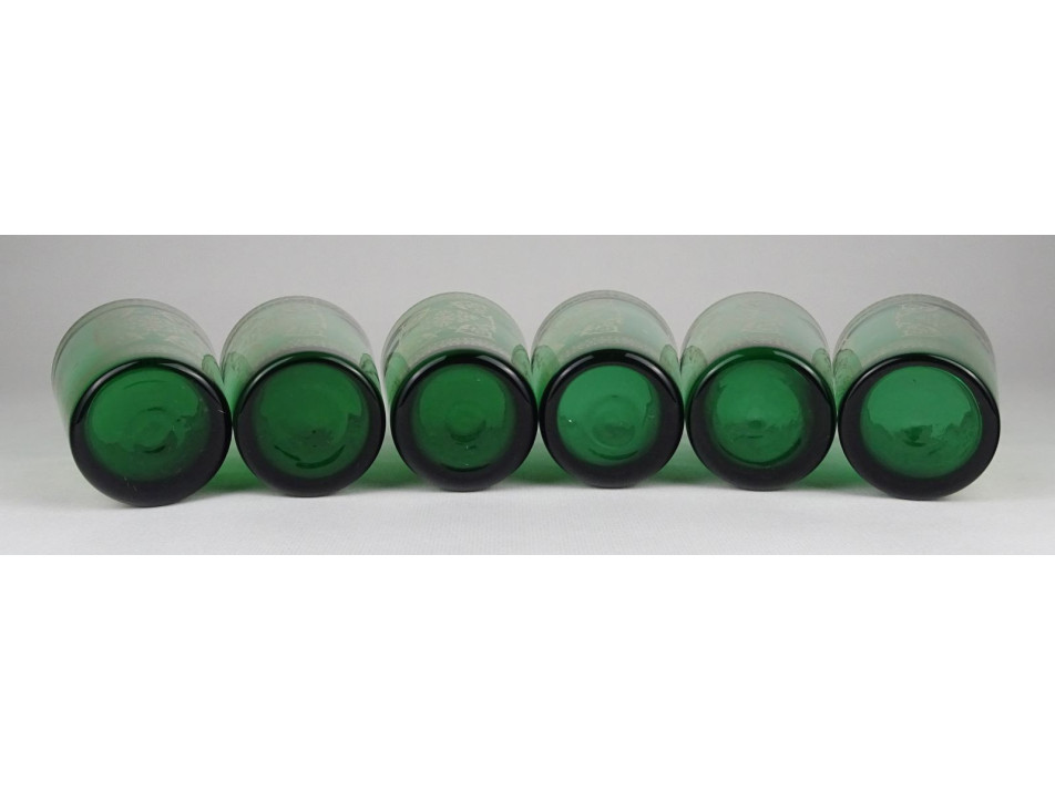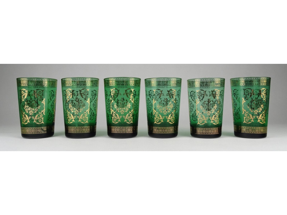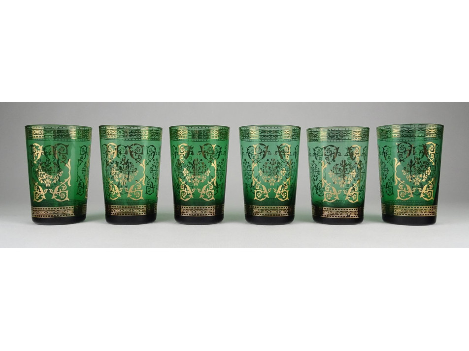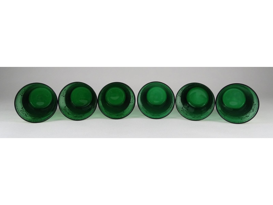 Régi aranyozott méregzöld cseh üveg pohár készlet 6 darab