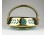 Régi, szép állapotú, gazdagon és vastagon aranyozott fújt üveg füles cukortartó, cukorkínáló. Az üveg anyagában színezett, zöldes színű. Asztalközép kínáló tál. Oldalán csiszolt virág díszítés látható.