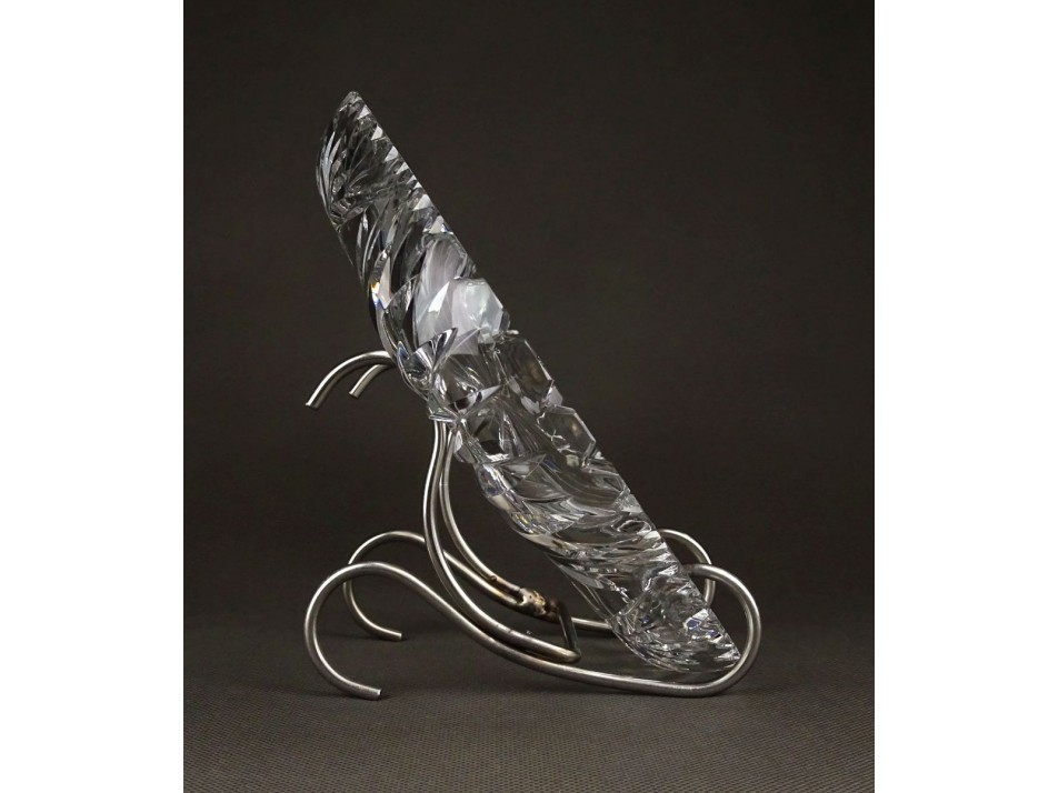 Hibátlan állapotú, csiszolatokkal gazdagon díszített, vastag falú, gyönyörű kristály kínáló tál, tálca.