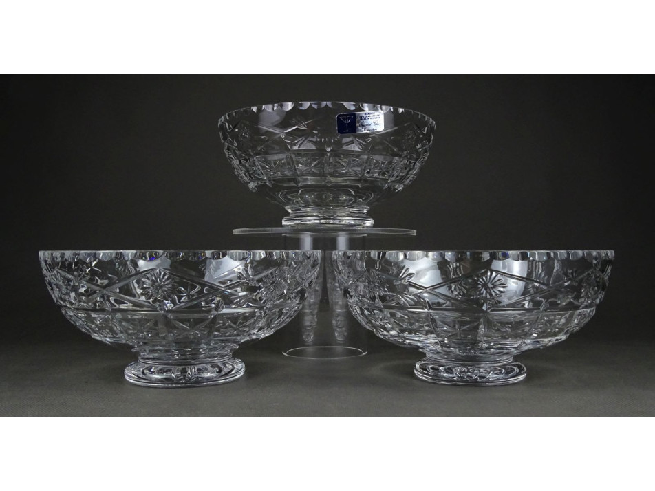 Hibátlan állapotú, jelzett, talpas kristály asztali kínáló tál, gyümölcskínáló tál, három darab.