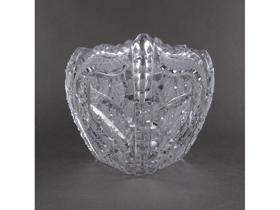 Hibátlan állapotú, nagyméretű, gazdagon díszített, rombusz formájú, csiszolt kristály üveg kaspó, asztalközép kínáló.