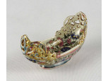 Antik vajszínű áttört gondola alakú Zsolnay majolika tálka 13 cm