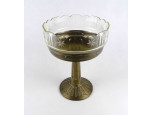 Antik sárgaréz talpas üvegbetétes asztalközép gyümölcs kínáló 24 cm