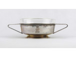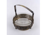 Antik monogramos üvegbetétes ezüst kínáló kosár kistál 164 g