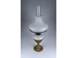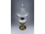 Antik szecessziós öntöttvas talpú asztali petróleumlámpa 46.5 cm
