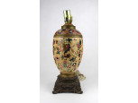 Antik bronz talpas virágmintás majolika lámpa test 31.5 cm
