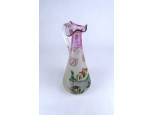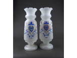 Antik 1880 körüli festett virágmintás fehér kalcedon üveg váza pár 23 cm