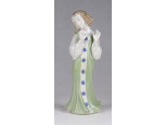 Fejkendős virágszedő kerámia lány virágokkal 17.5 cm