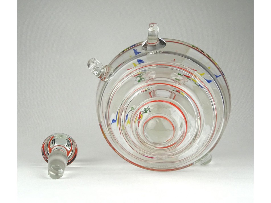 Régi különleges festett pálinkás üveg dugóval ~ 1930 körüli