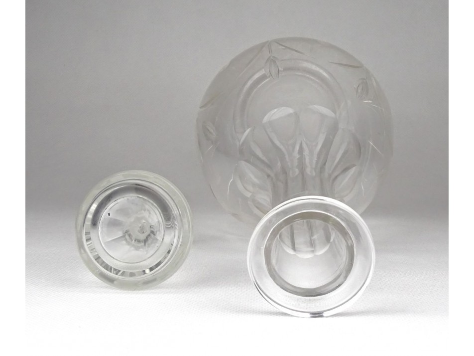 Hibátlan állapotú, csiszolatokkal díszített, asztali dugós üveg kínáló, az 1900-as évek első feléből.