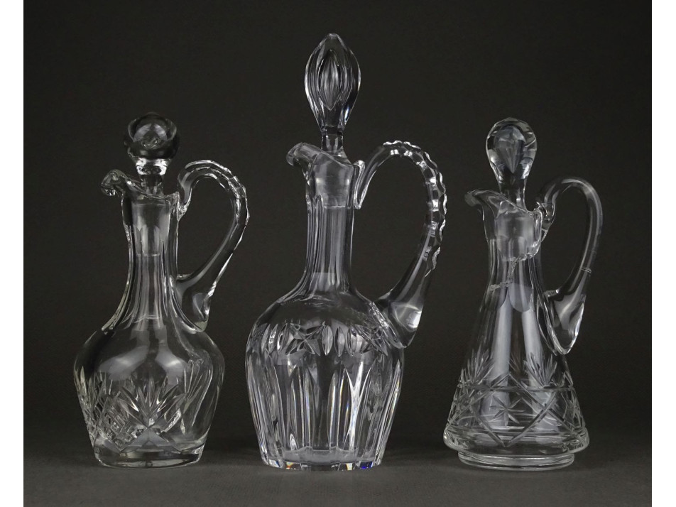 Régi kisméretű ecetes és olajos kristály kínáló kiöntő dugóval 3 darab