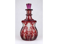 Régi, szép állapotú, nagy méretű, csiszolt virágmotívumokkal díszített üveg kínáló, borosüveg szép dugóval.