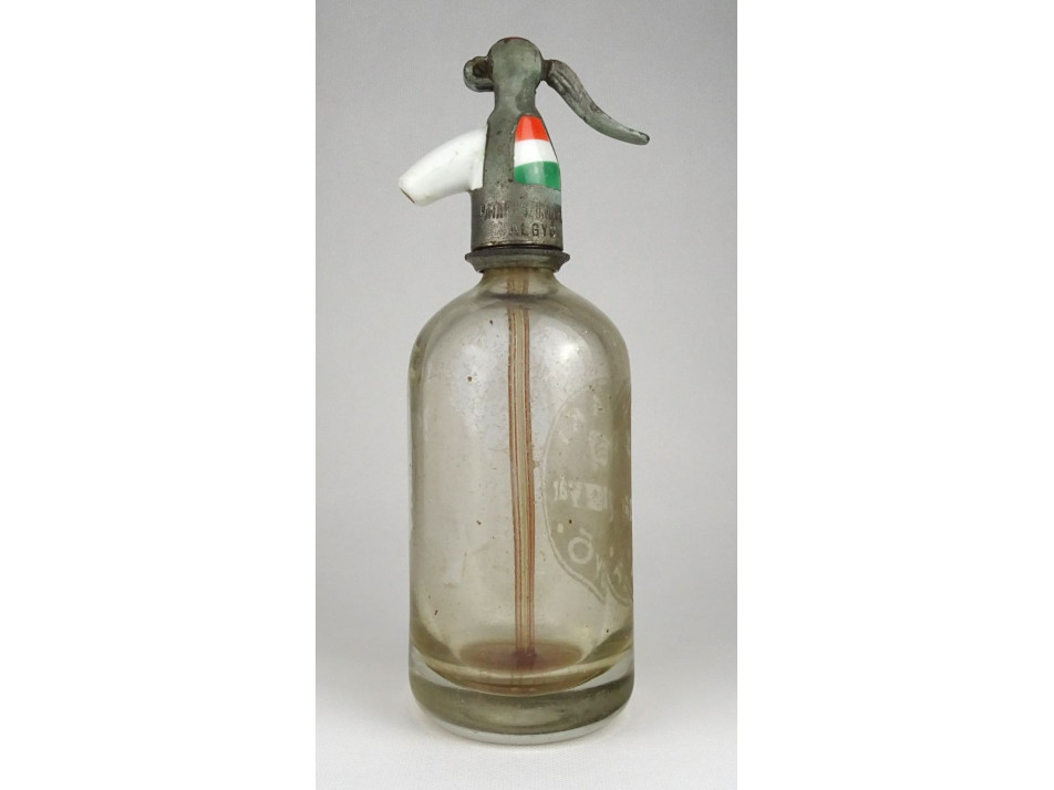 Szép állapotú, nem törött, nem repedt, gyűjteménybe való szódásüveg, oldalán homokfúvott felirattal: