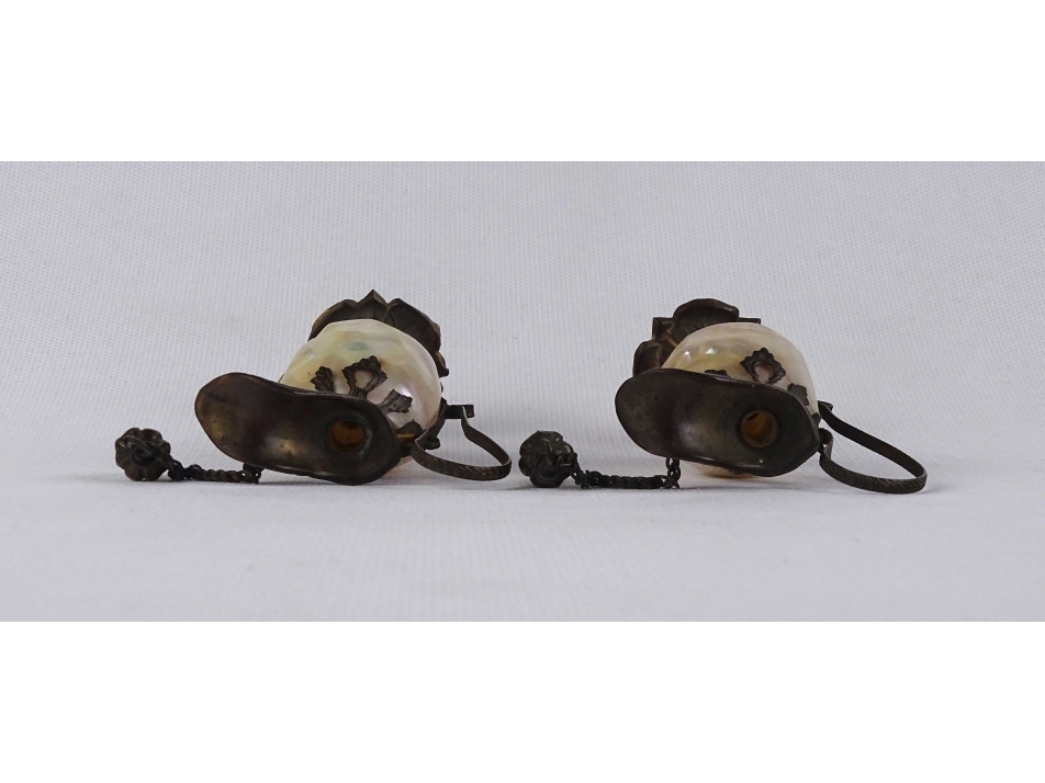 Régi kisméretű különleges gyöngyház testű olajos ecetes kiöntő pár 9.5 cm