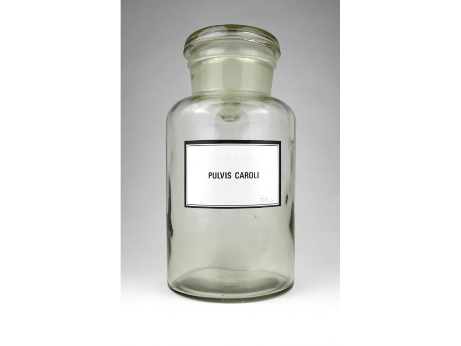 Régi nagyméretű gyógyszertári patikaüveg 3 liter PULVIS CAROLI