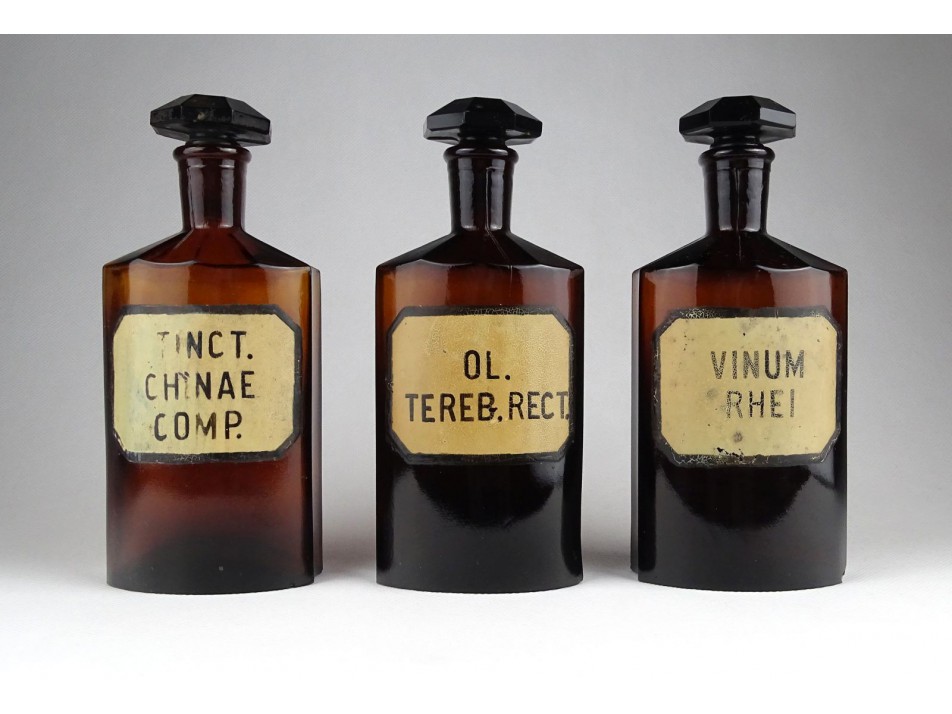 Régi barna gyógyszertári patika üveg 3 darab