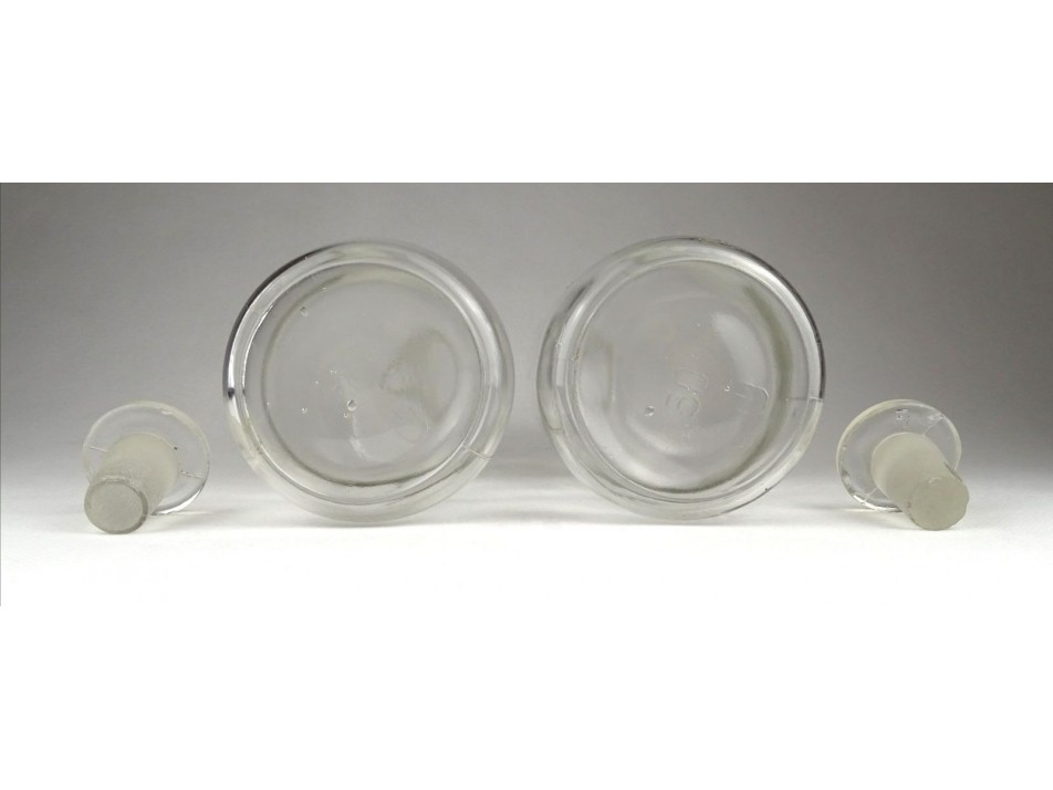 Két darab régi, dugós patika üveg, gyógyszerészeti tároló üveg.