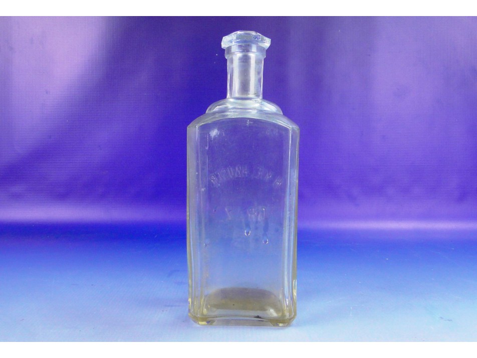 Régi, hibátlan állapotú, nagyméretű, gyógyszertári üveg, szögletes alakú osztrák patikaüveg.