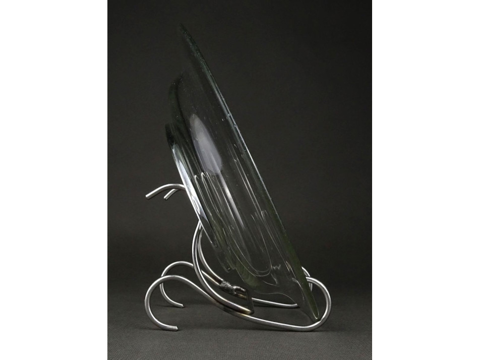 Régi hibátlan állapotú üveg tányér, mélytányér, leveses tányér. Alján a fújás, szakítás kicsiszolt nyoma látható.