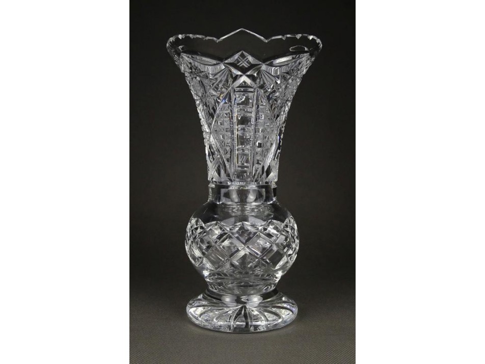 Régi hibátlan talpas csiszolt kristály váza 22 cm