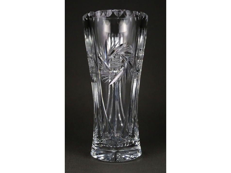 Hatalmas vastag falú csiszolt üveg kristály váza 26 cm